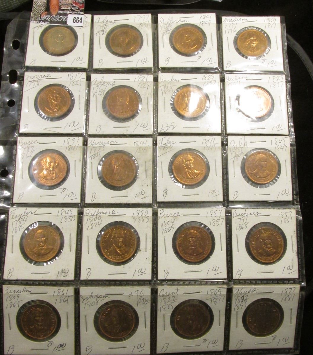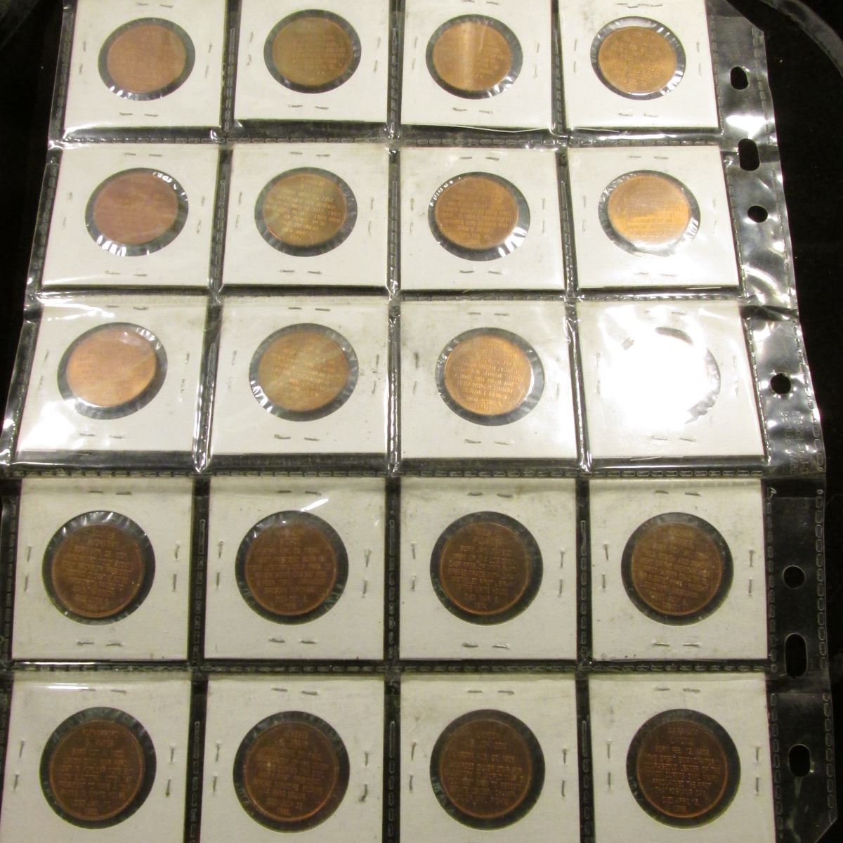 (20) Different Presidential Bronze Medals, all BU and stored in a plastic page.