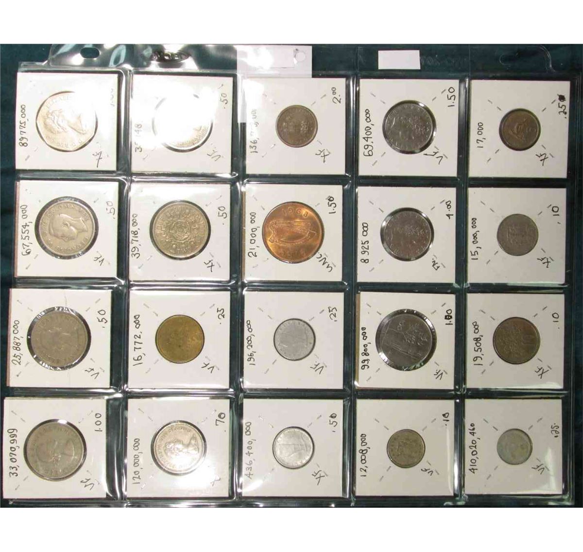 (20) Different World Coins in a plastic page. All Different and attributed. Includes Great Britain,