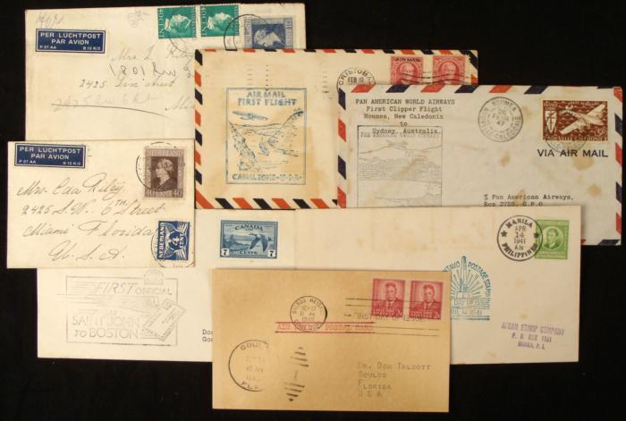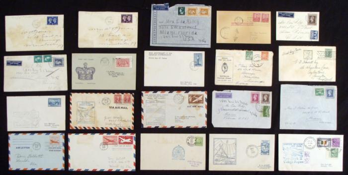 These 20 original covers are First Day of Issue, to or from the U.S. or foreign countries, dating from the 1930's to the 1940's. The stamps originate from France, Netherlands, the Canal Zone, Canada, and the Philippines. They are in good to very good condition, some with slight staining.
