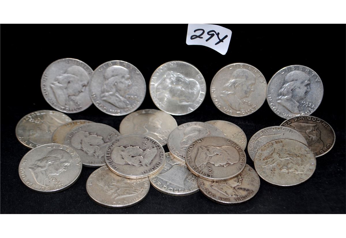20 FRANKLIN HALF DOLLARS FROM SAFE DEPOSIT - MIXED DATES AND MINTS - SOLD PER COIN TIMES 20