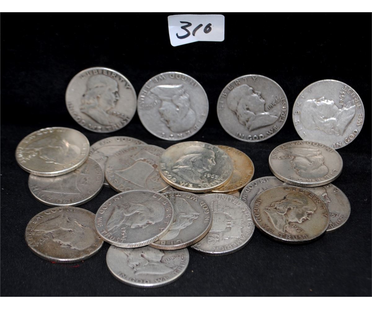 20 FRANKLIN HALF DOLLARS FROM SAFE DEPOSIT - MIXED DATES AND MINTS -SOLD PER COIN TIMES 20