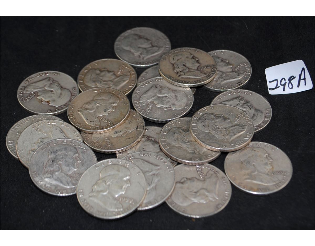 20 FRANKLIN HALF DOLLARS FROM SAFE DEPOSIT - MIXED DATES AND MINTS -SOLD PER COIN TIMES 20