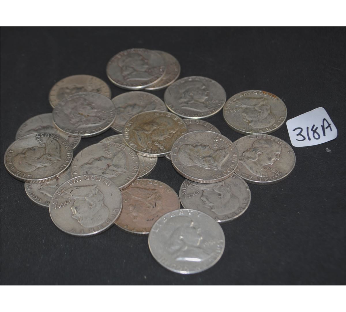 20 FRANKLIN HALF DOLLARS FROM SAFE DEPOSIT - MIXED DATES AND MINTS -SOLD PER COIN TIMES 20