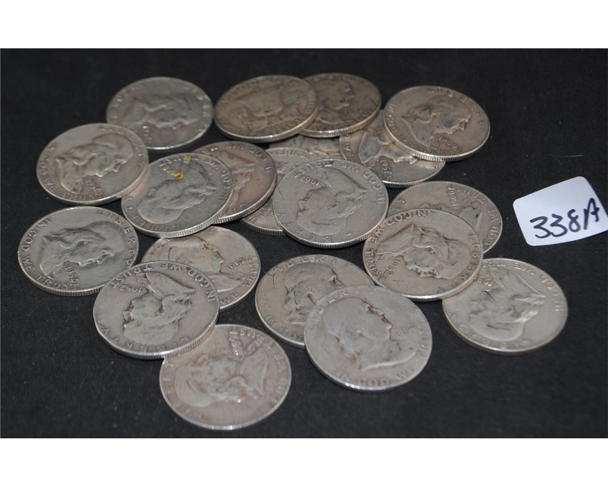 20 FRANKLIN HALF DOLLARS FROM SAFE DEPOSIT - MIXED DATES AND MINTS - SOLD PER COIN TIMES 20
