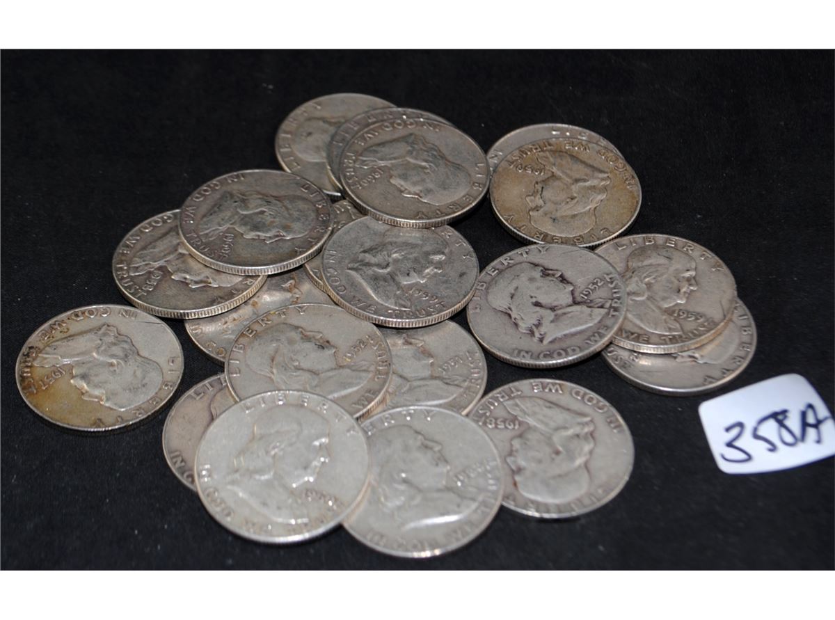20 FRANKLIN HALF DOLLARS FROM SAFE DEPOSIT - MIXED DATES AND MINTS - SOLD PER COIN TIMES 20