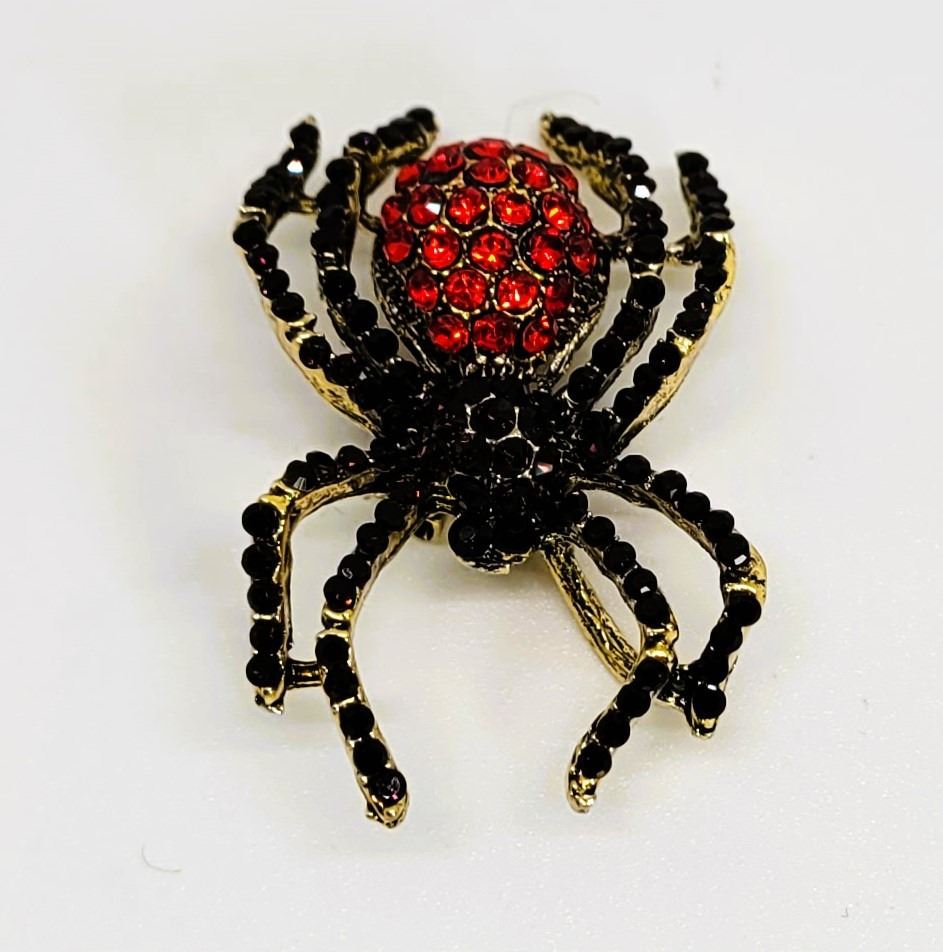 WITH BLACK AND RED CRYSTALS SPIDER BROOCH/PENDANT. JEWELRY
