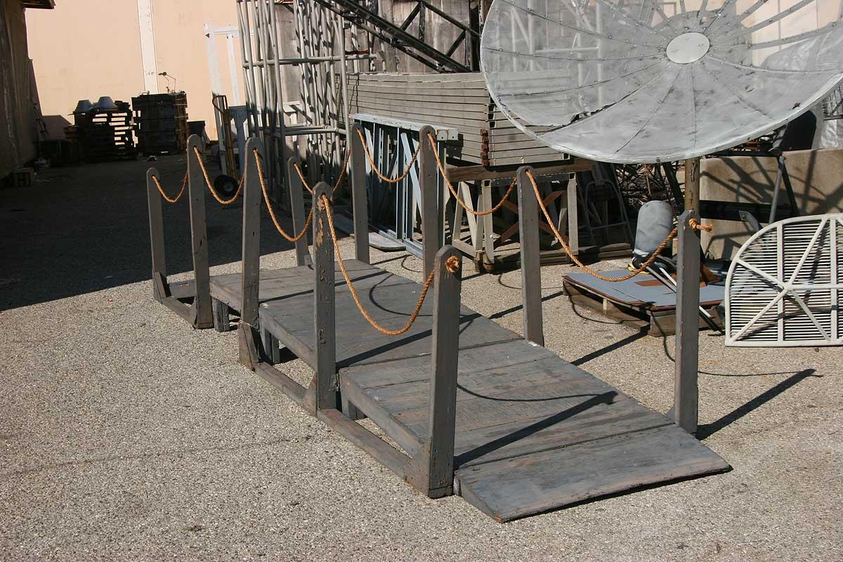 20' Foot Long X 3 1/2' foot wide Grey Prop Wood Bridge with Rope Arm Rails, breaks down into 8 pieces for easy storage and transport