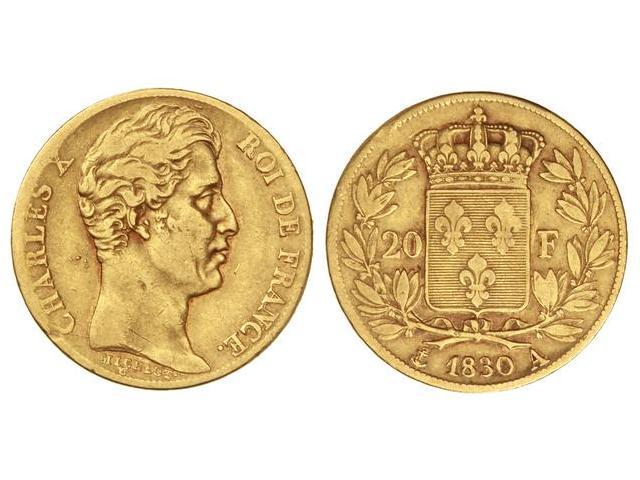 20 Francos. - 1830-A. - CARLOS X. - PARIS. - AU. KM-726.1. MBC-. - -