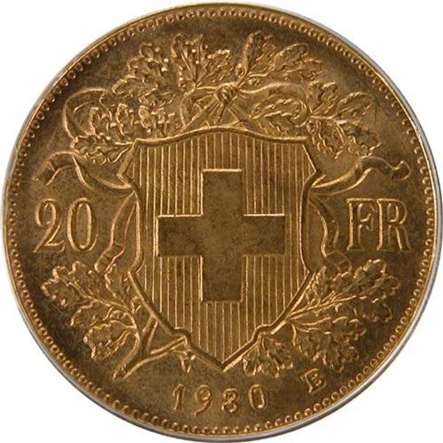 20 Francs 1930B PCGS MS-66. Superbly lustrous with near flawless surfaces