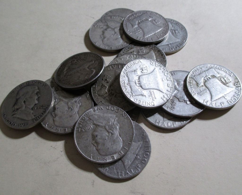 (20) Franklin Halves- 90% Silver Mixed Dates