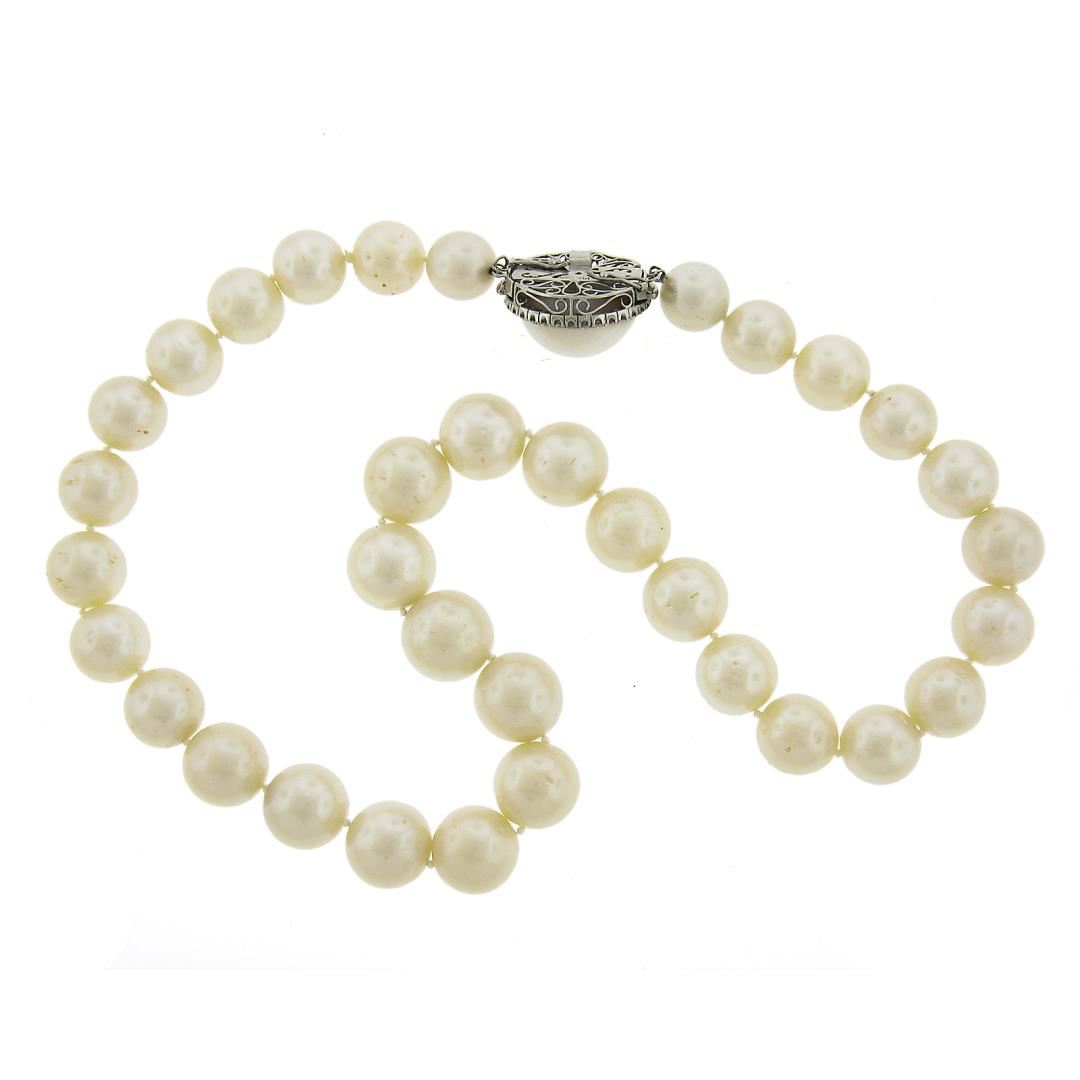 20" GIA Cultured Pearl Strand Necklace w/ 14k Gold Diamond & Mabe Pearl Clasp