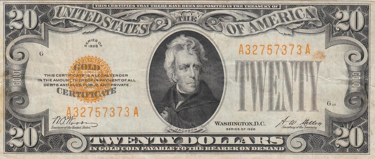 $20 GOLD CERTIFICATE 1928 SHARP NOTE