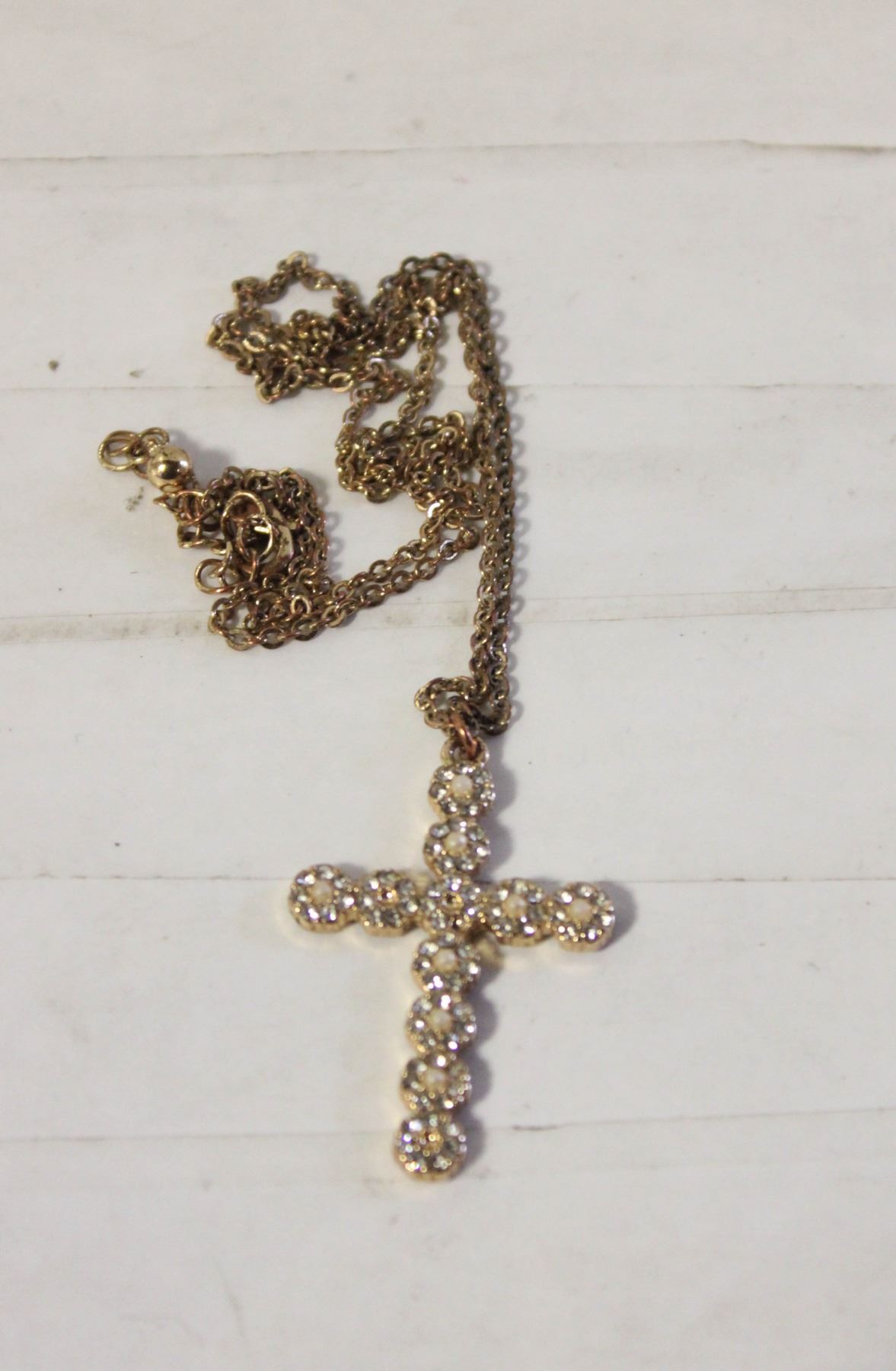 20" GOLD TONE NECKLACE WITH JEWELED CROSS
