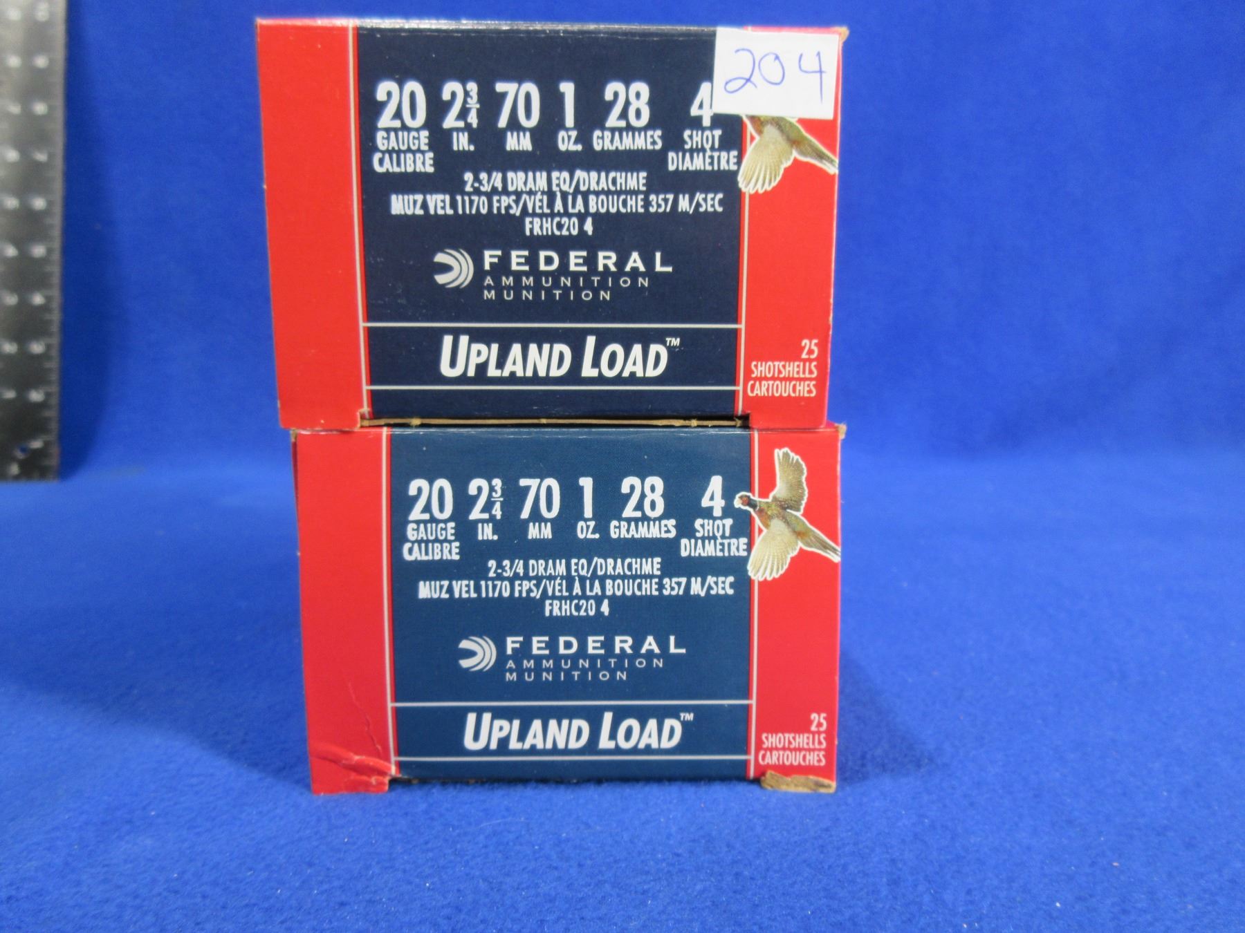 20 Ga. 2 3/4" 4 Shot Upland Load Federal Shotshells - 2 Boxes of 25 - PICK UP ONLY