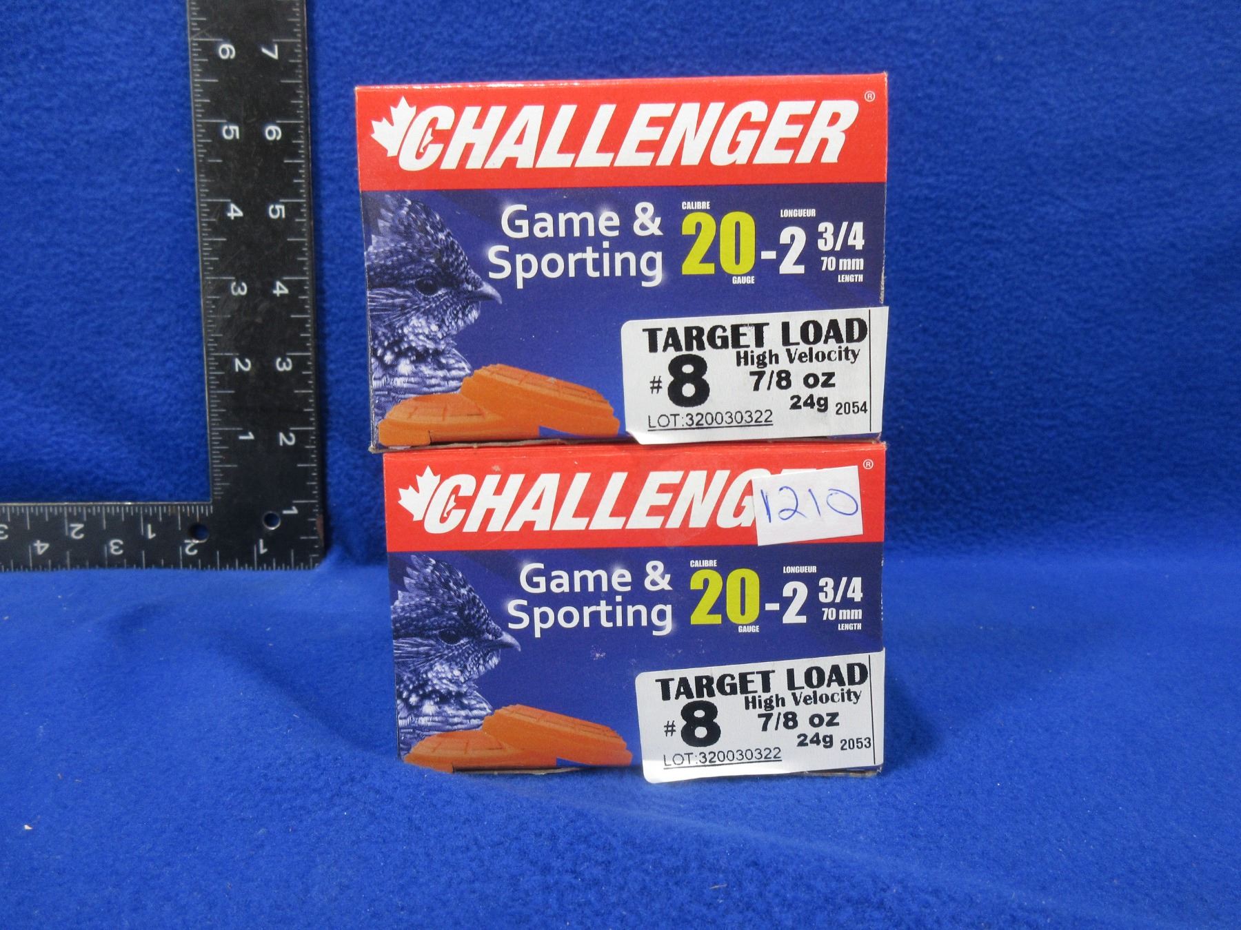 20 Ga 2 3/4" 8 Shot HV Challenger Target Load Shotshells - 2 Sealed Boxes of 25 - Must Ship Purolator
