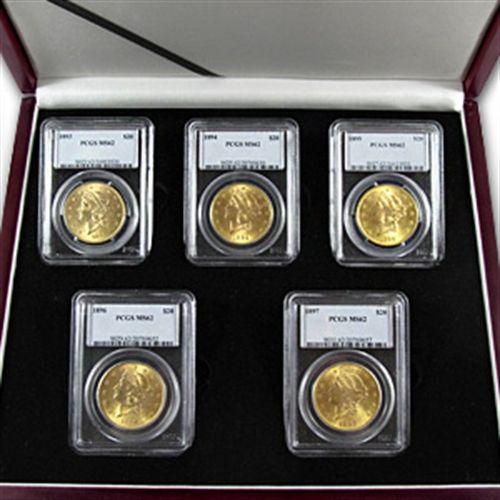 $20 Gold Liberty Double Eagle Date Set - (P Mint) - MS- **|**|** Year: 1893-1897 ; Mint Mark: MS-62 ; Grade: Star of David ; Denomination: $20 ; MSRP: $13700
