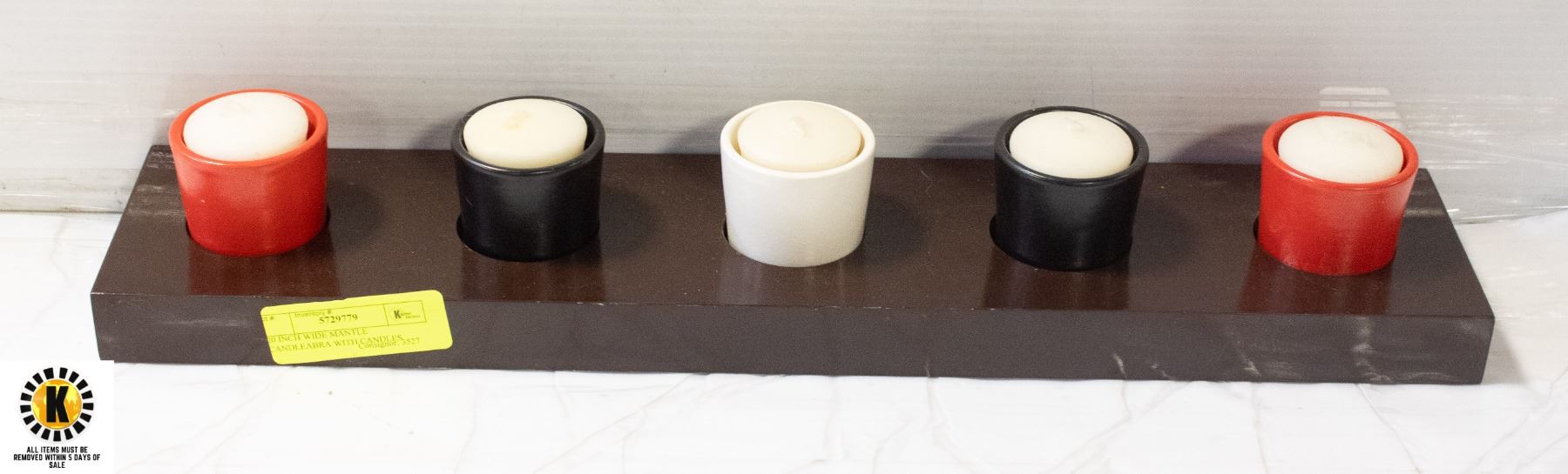 20 INCH WIDE MANTLE CANDLEABRA WITH CANDLES