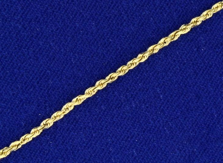 In 14K Yellow Gold. 1.3mm wide, with safety clasp. 4.2g