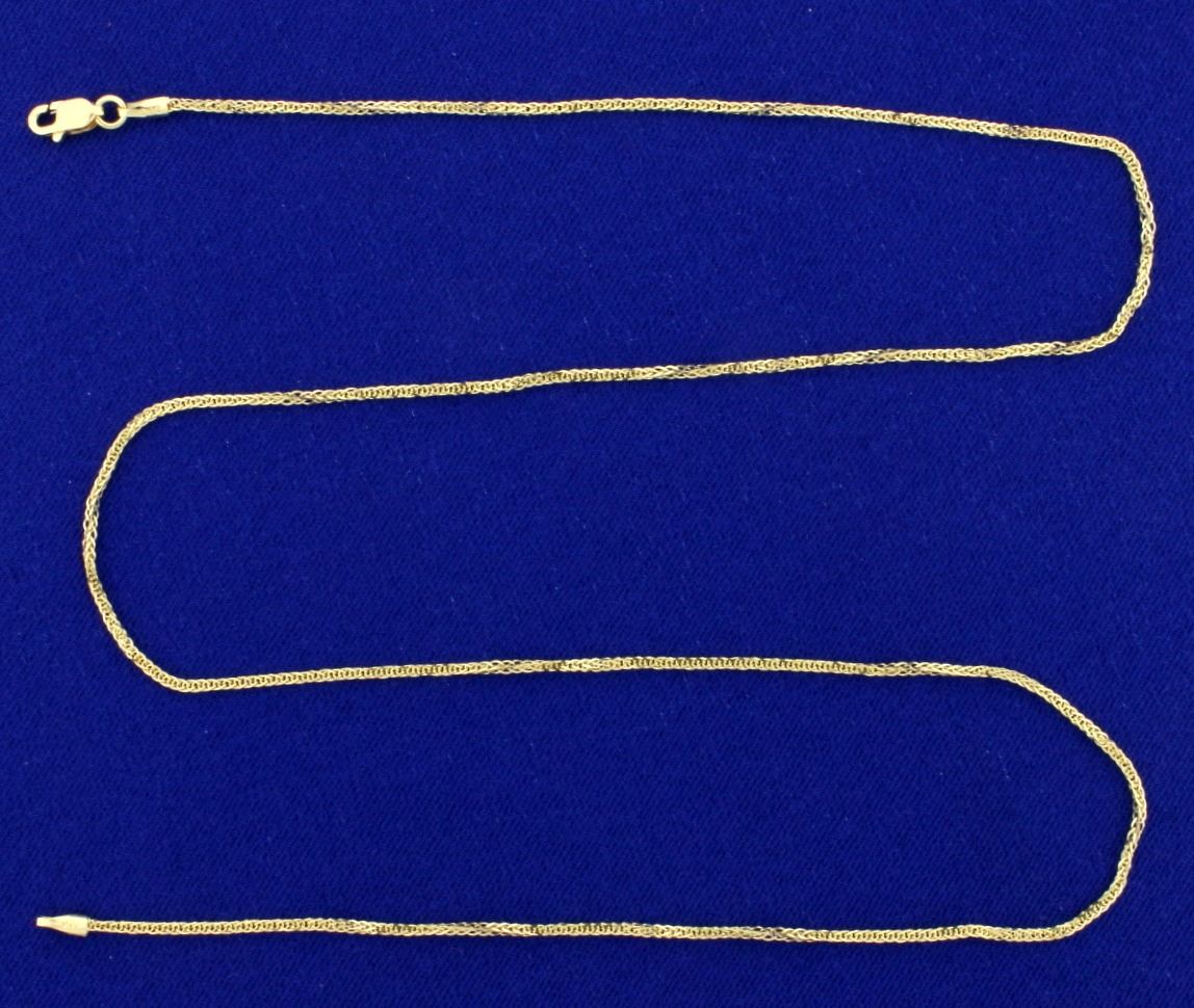 In 14k yellow gold. Chain has bright yellow finish with lobster clasp. 2.8g.
