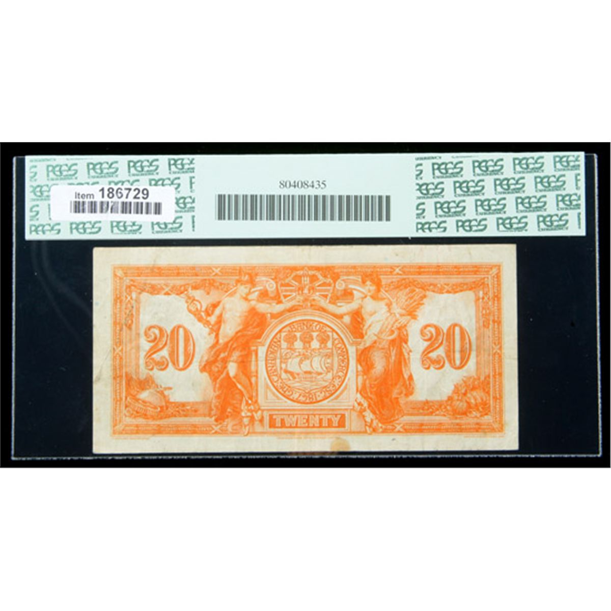 $20 Jan. 2, 1935 The Canadian Bank of Commerce, Toronto, ON. PCGS Very Fine 25 Apparent. There is a small stain in the bottom margin, duly noted by the PCGS grading label.
