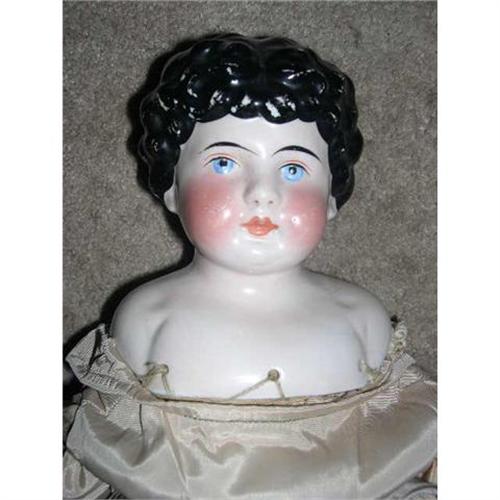 20" Kling Pink-Luster Exposed Ear China Doll 1880's. This doll is marked 220 and the 200's series are attributed to Kling, a German Manufacturer. Doll has some pit marks from how she was fired. There is some paint rub. She has partly exposed ears and is definitely pink luster. She is on an old body with yellowed underwear. So of the lighter spots are just flash from camera. Doll comes from a smoke free environment. Buyer to pay $20 for shipping, handling, and insurance. Thanks for viewing.