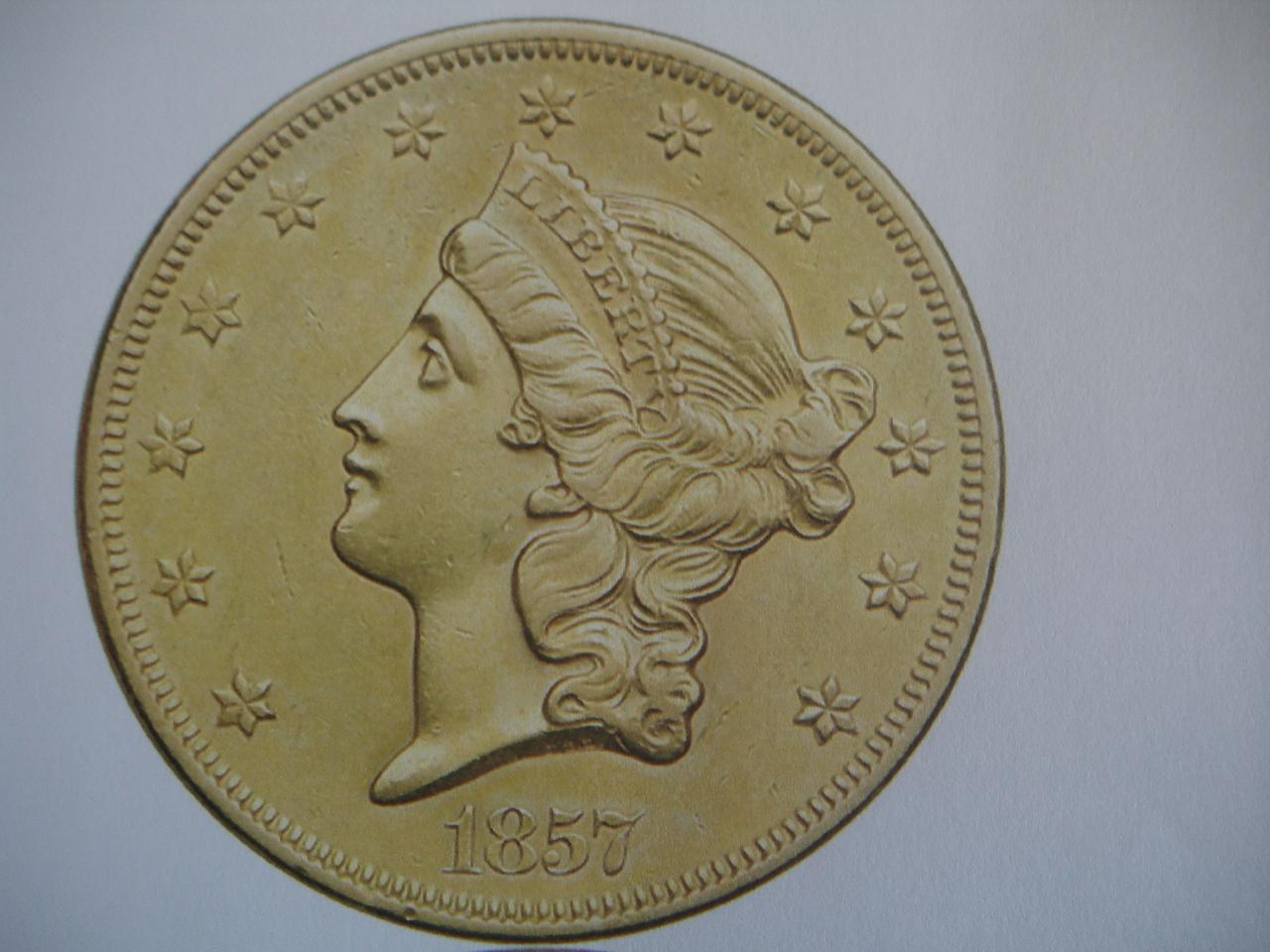 20 DOLLAR LIBERTY 1857 DESIGN WITH OUT MOTTO TWENTY D