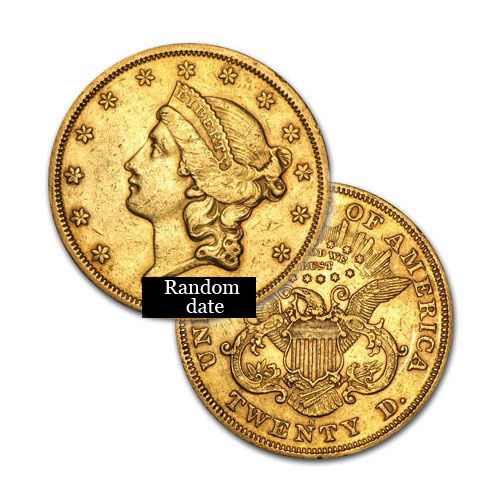 One piece $20 Gold Coin Liberty Head - Double Eagle Bullion Coin 1 Oz (1850-1907). CIRCULATED - Dates Of Our Choice