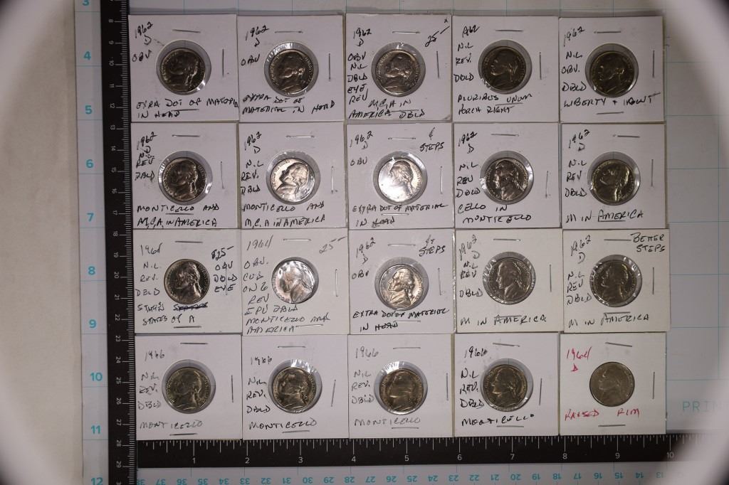 ASSORTED DOUBLE LETTER/LETTERS ON THE OBVERSE OR REVERSE OF EACH COIN. ALL COINS ARE IN FLIPS
