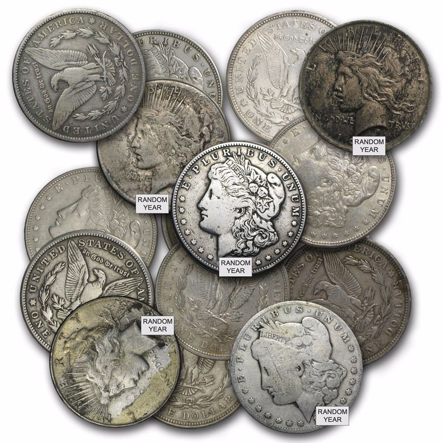 20 MORGAN AND PEACE SILVER DOLLARS MIX CULL $22 EA
