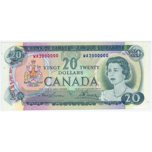 Bank of Canada, $20.00 Million note 1969, grade Choice AU-UNC, Charlton # BC-50b, signature Lawson Bouey, serial WA2000000.