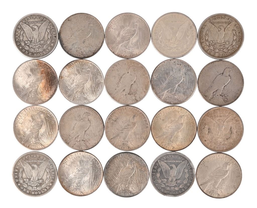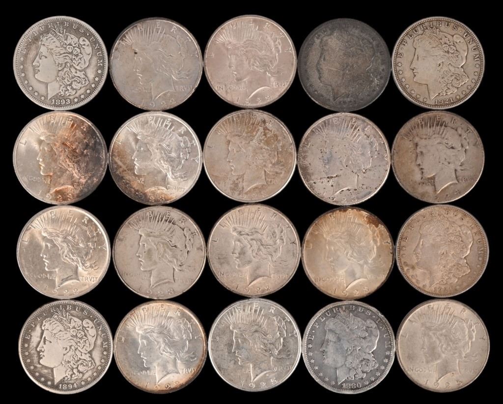 (6) US Morgan Silver Dollars 1880-1921. (14) US Peace Silver Dollars 1922-1925.