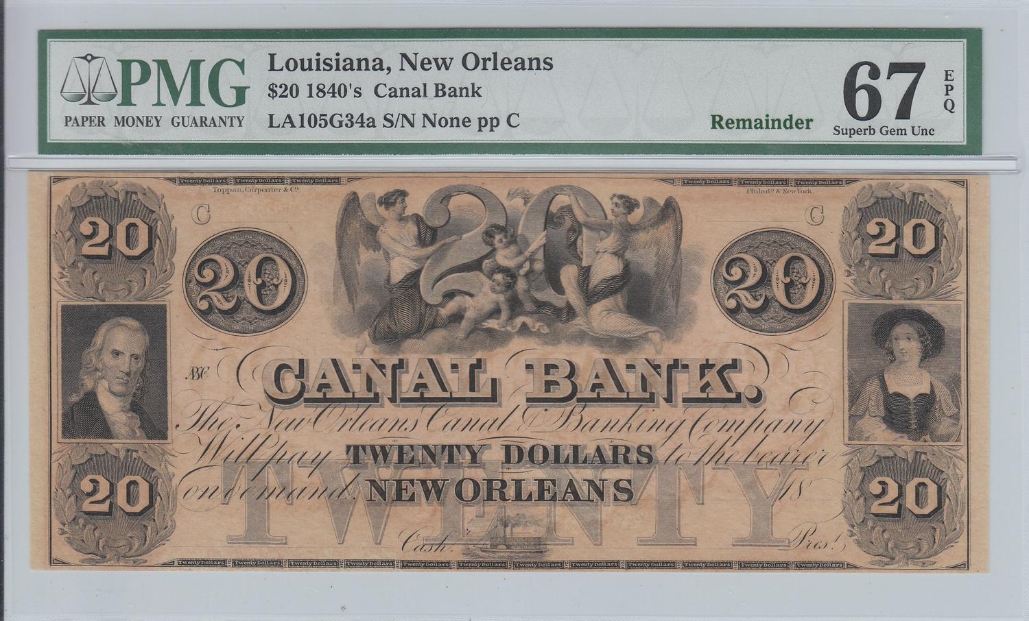 $20 OBSOLETE PERFECT PMG 67 EPQ 1840s OBSOLETE