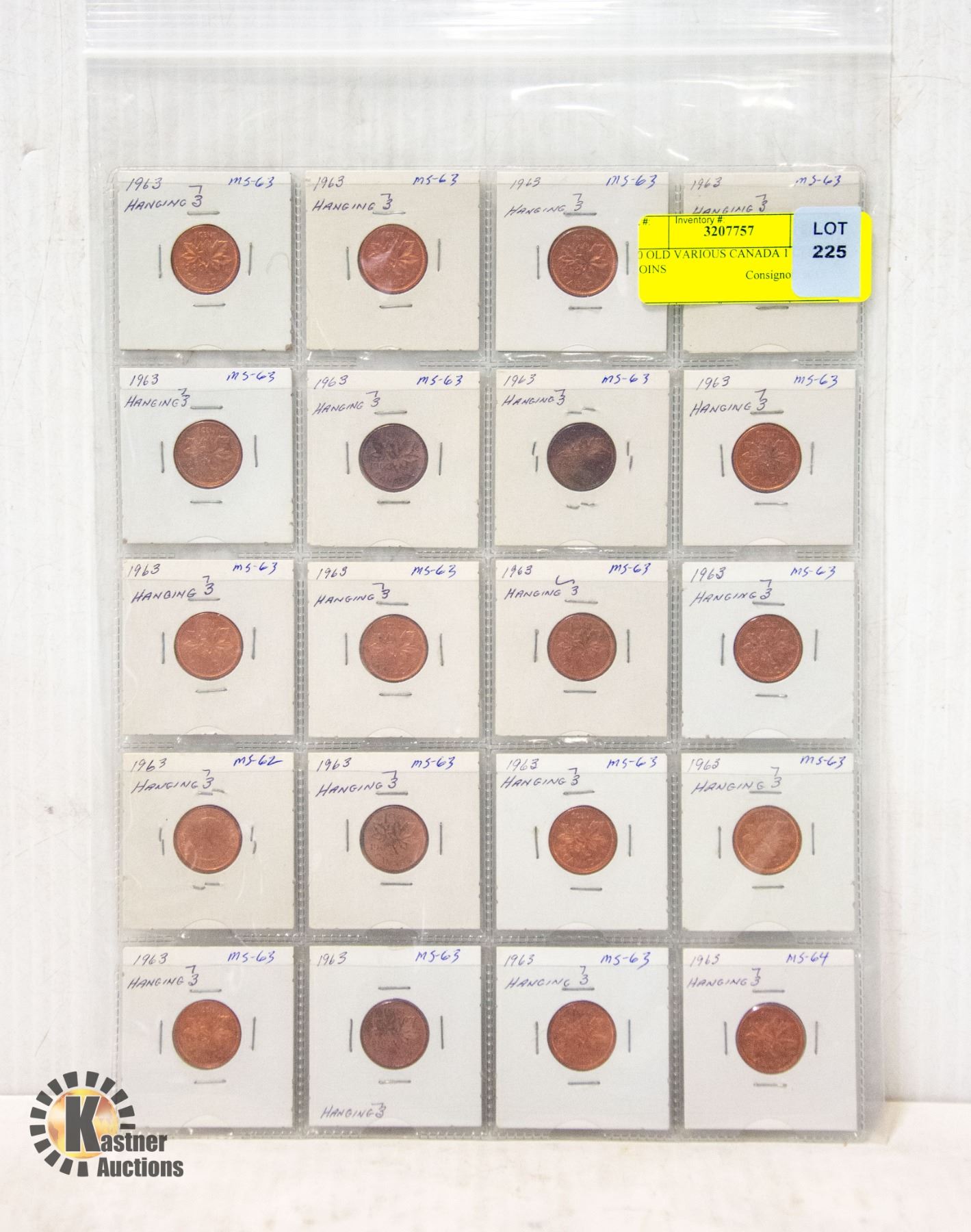 20 OLD VARIOUS CANADA 1 CENT COINS