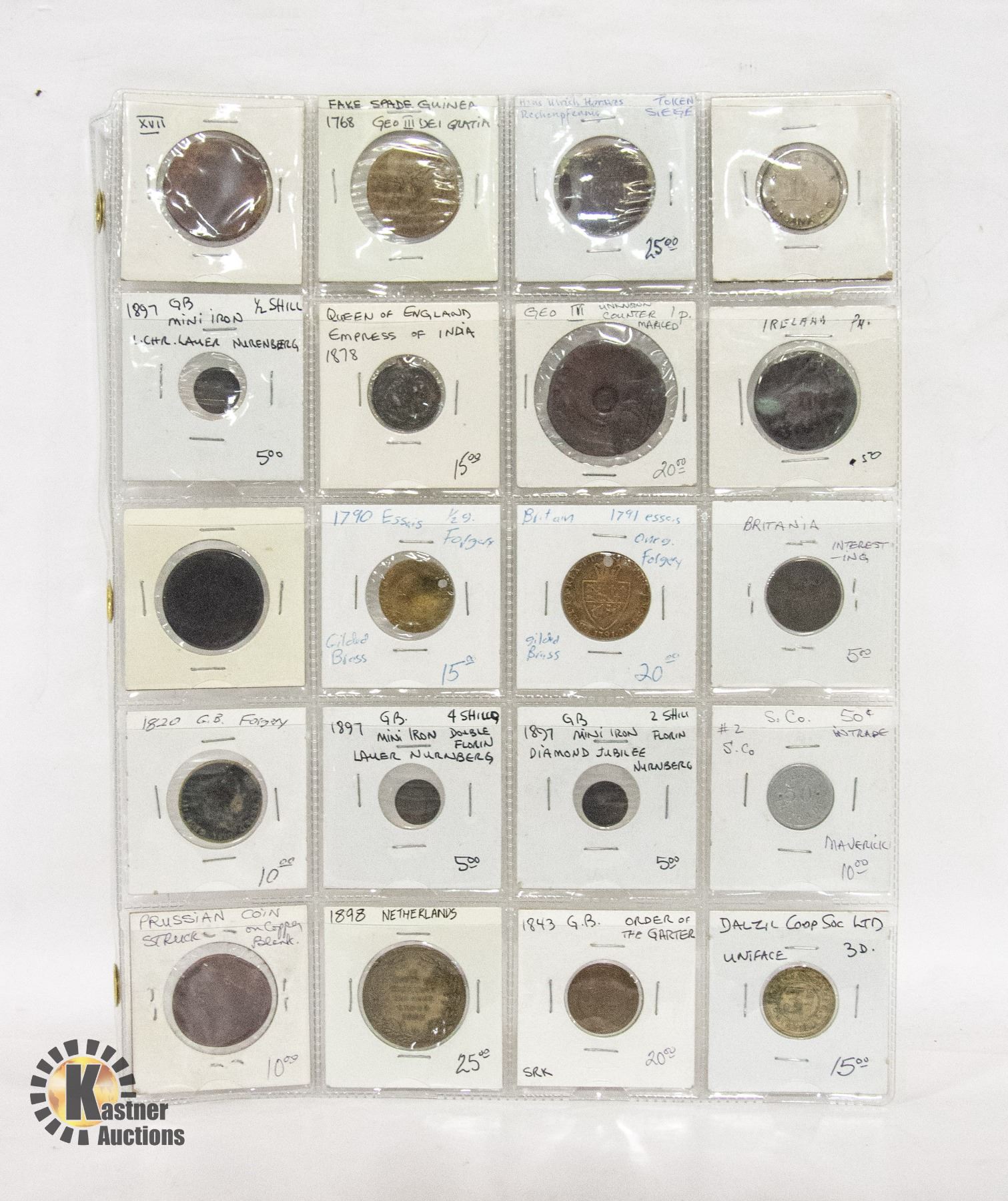 20 OLD VARIOUS TOKENS, COINS, MEDALS ETC.
