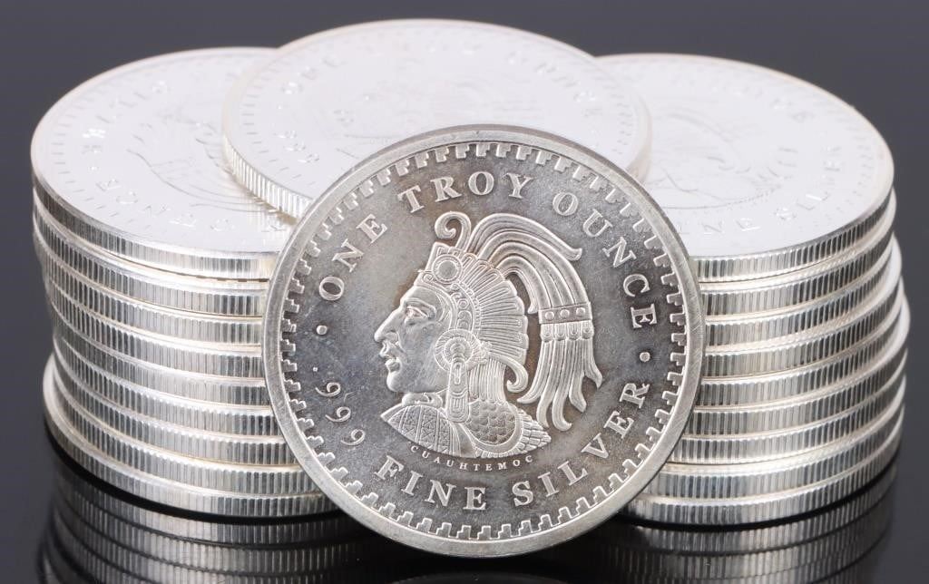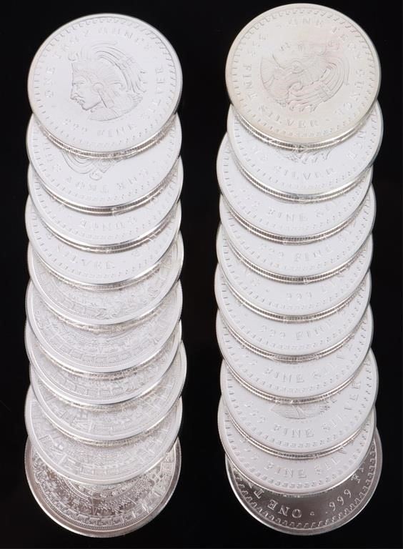 20 one troy oz Aztec Calendar 0.999 Silver Rounds Mint State.