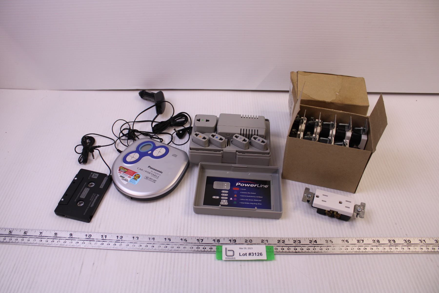 (20) Outlets (NIB) + Powerline European Plug Adapter and Panasonic CD Player w Accessories
