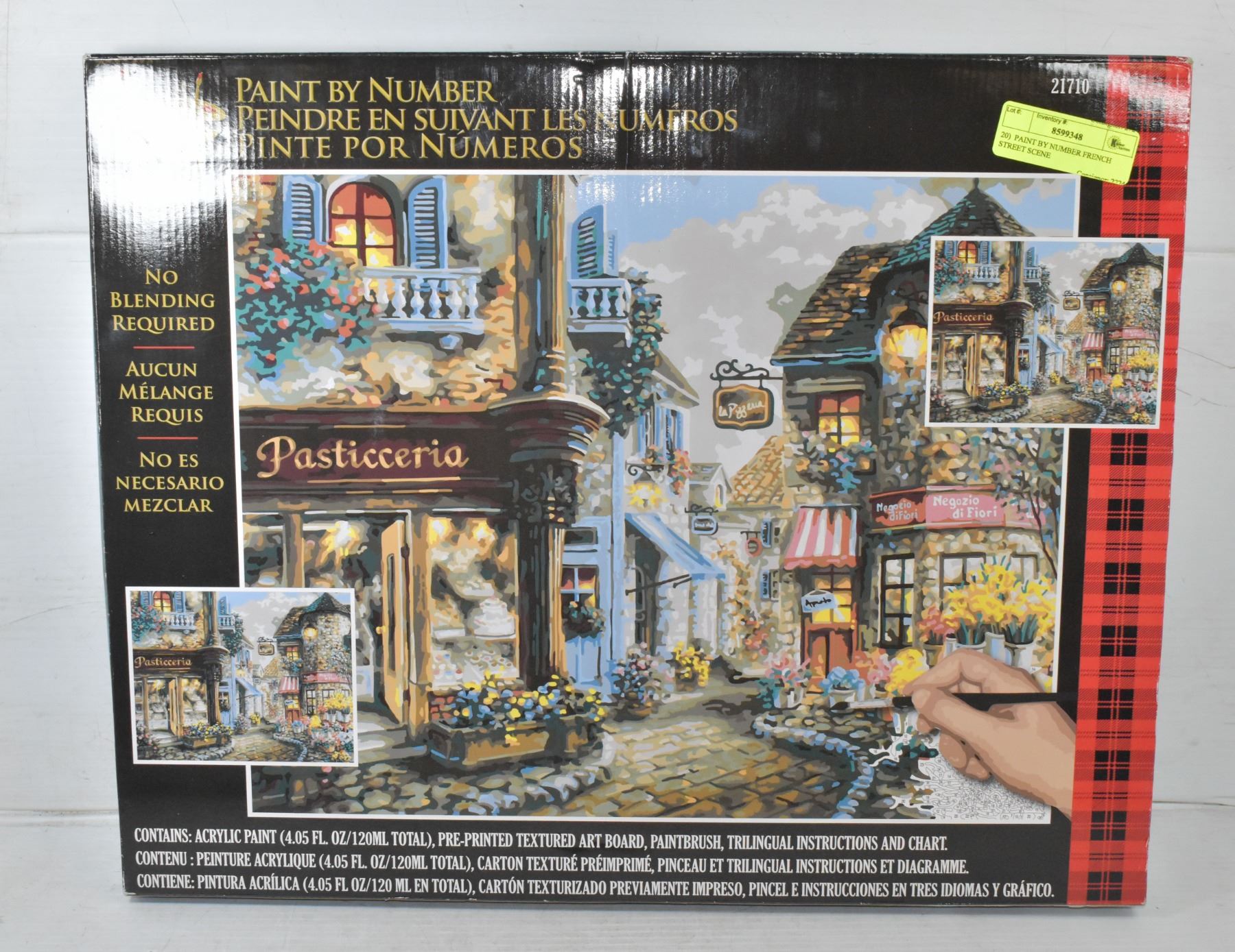 PAINTS AND BRUSHES ARE IN SEALED BAG, FINISHED PRODUCT IS 20" X 16". HOBBIES