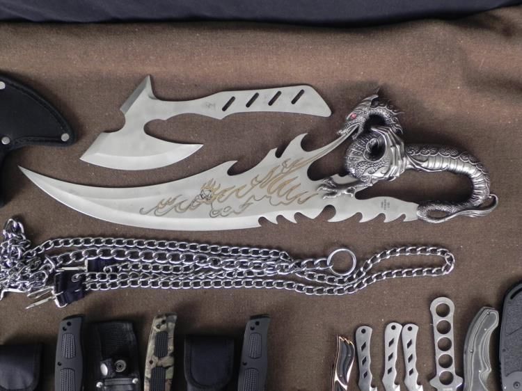 20 pc KNIFE COLLECTION OF CONTEMPORARY KNIVES,SWORDS & KNIFE CHAINS RECENT VINTAGE