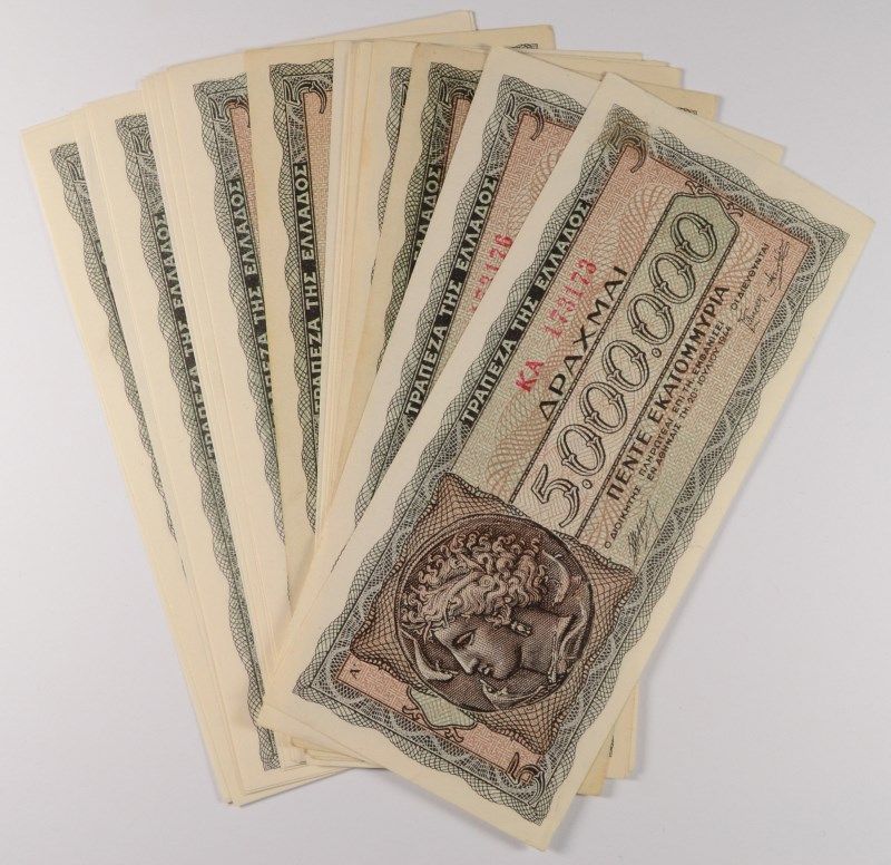 ( 20 ) PCS UNCIRCULATED 1944 BEAUTIFUL GREECE 5,000,000 DRACMAI NOTES, NICE!!