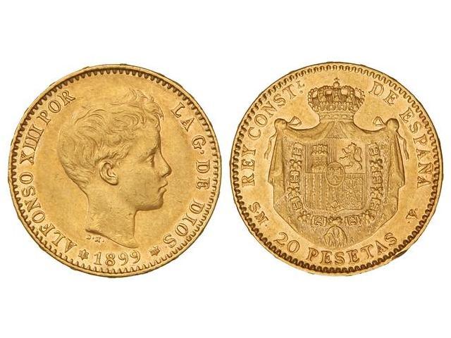 20 Pesetas. - 1899 (*18-99). - S.M.-V. - (Golpecitos). EBC. - -