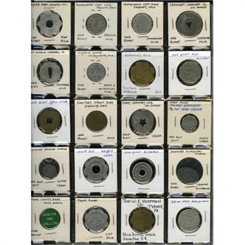<B>20-Piece Milk Token Lot.</B></I> A nice selection of 20 milk tokens from around the United States.<BR><BR><b>Shipping:</b> Coins & Currency (<a target="_blank" href="http://www.heritageauctions.com/common/shipping.php">view shipping information</a>)