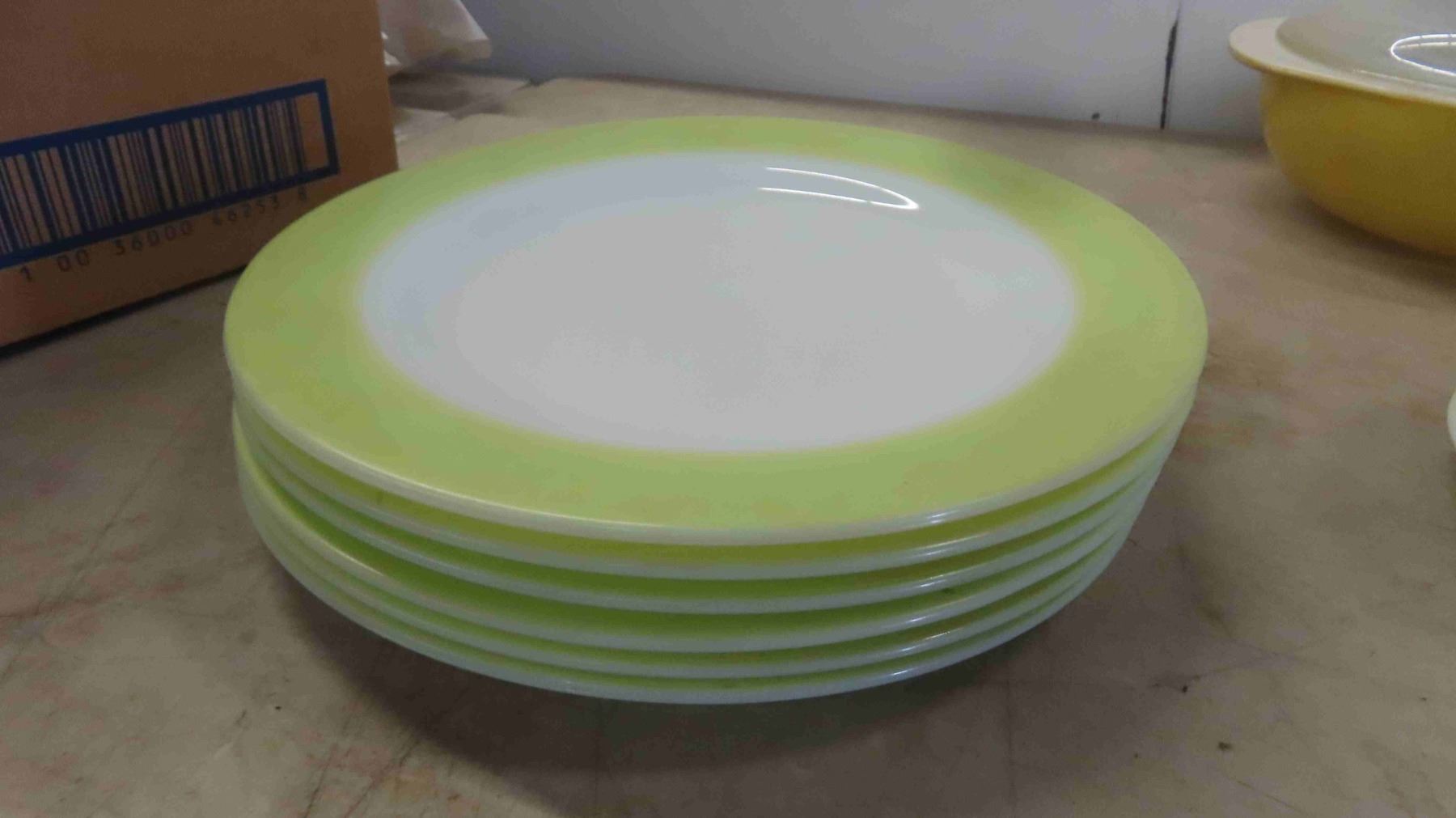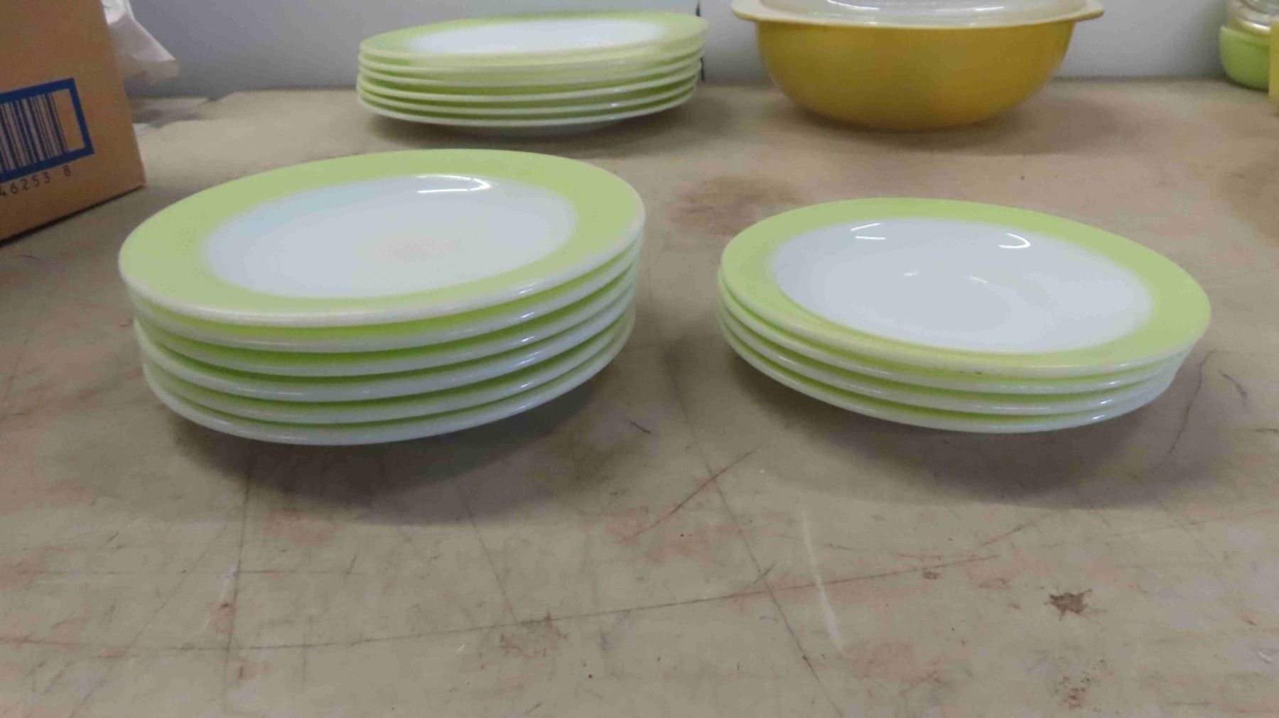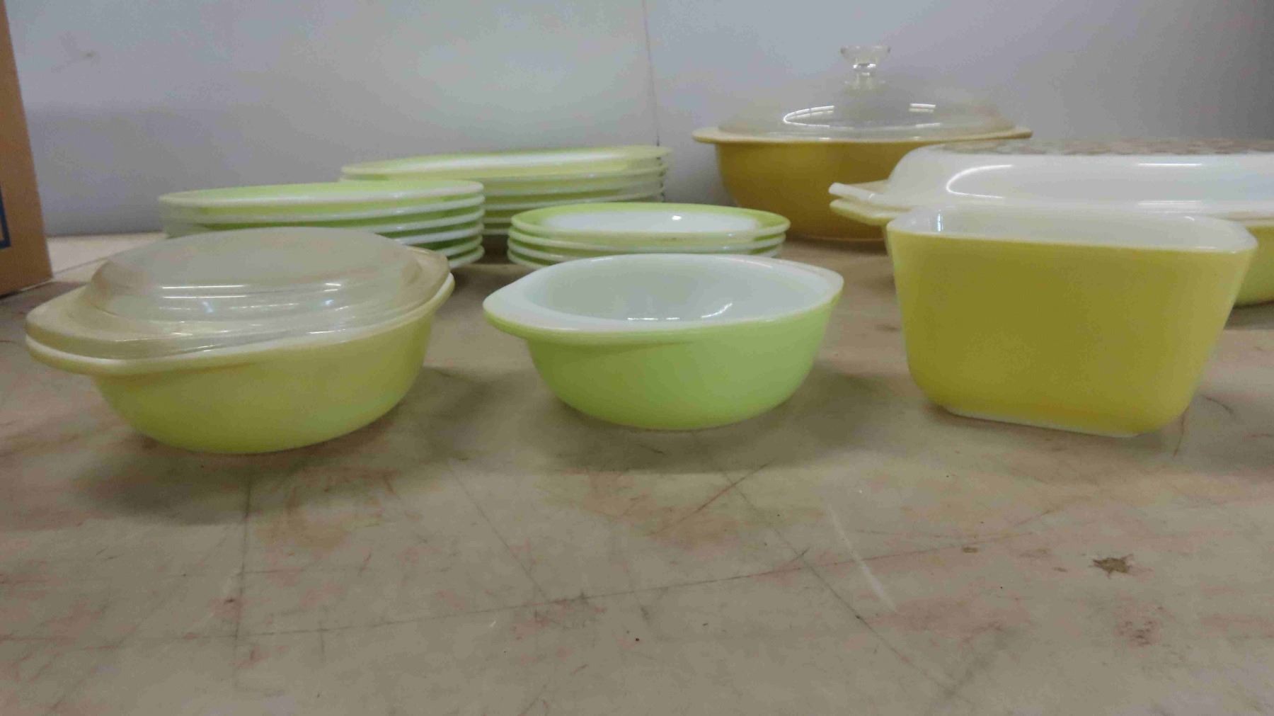 20 Pieces Yellow/Green Pyrex Dinnerware , 2 Casserole Dishes with Lids
