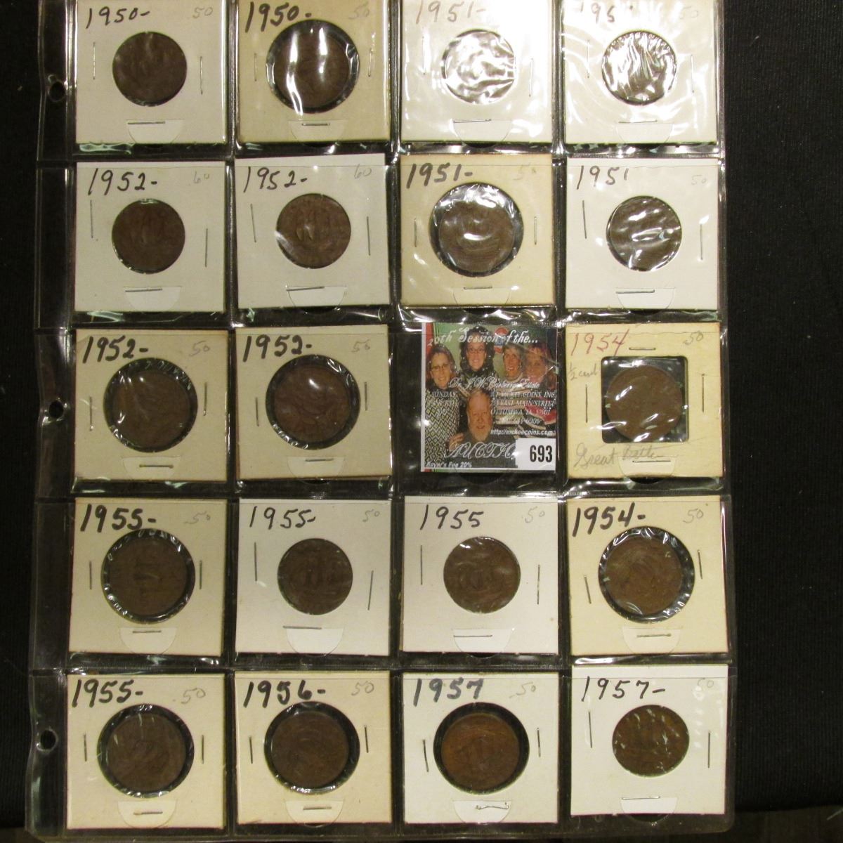 20-Pocket Plastic Page with a collection of (19) Great Britain Half Pennies dated 1950-57.