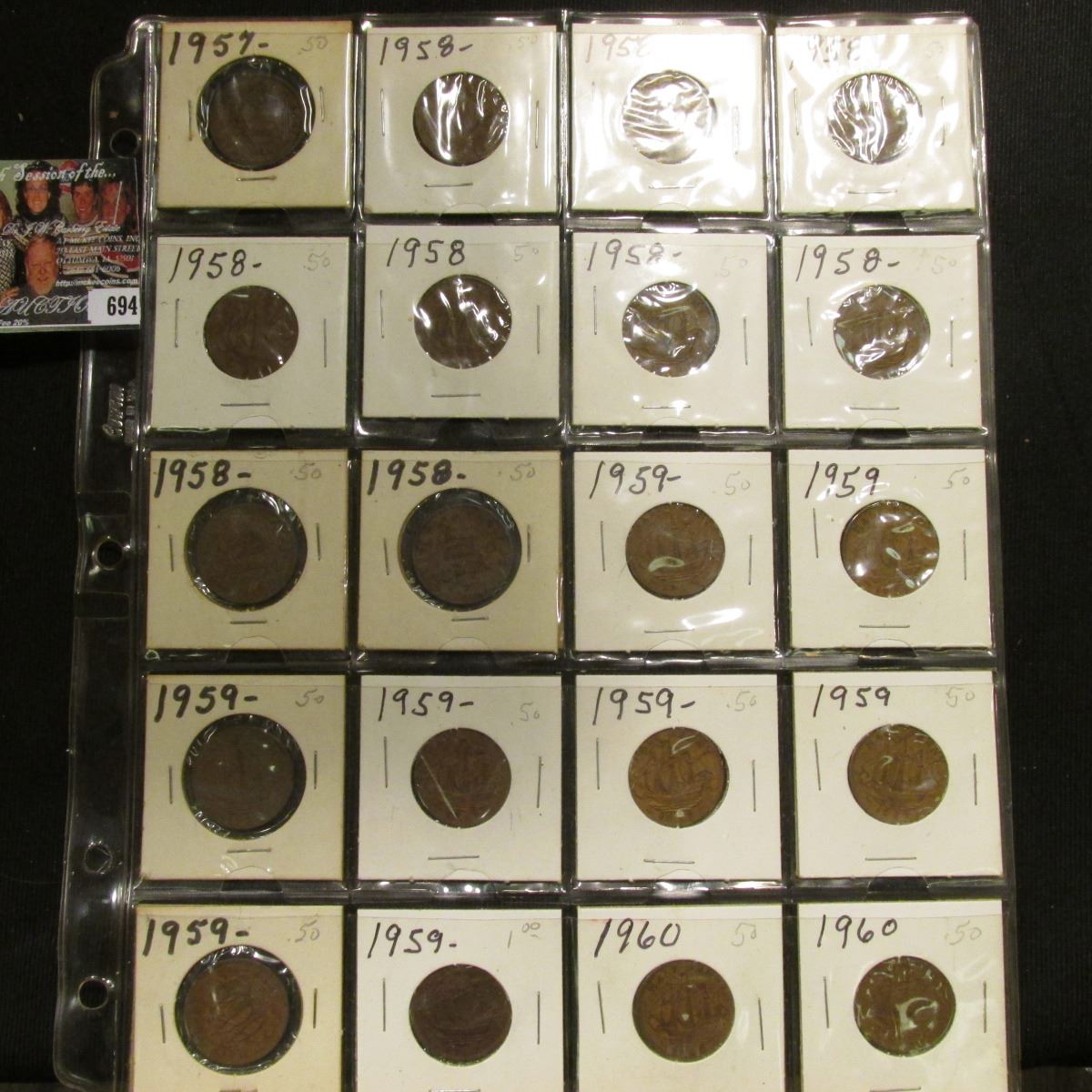 20-Pocket Plastic Page with a collection of (20) Great Britain Half Pennies dated 1957-60.