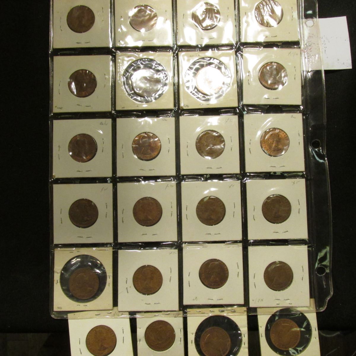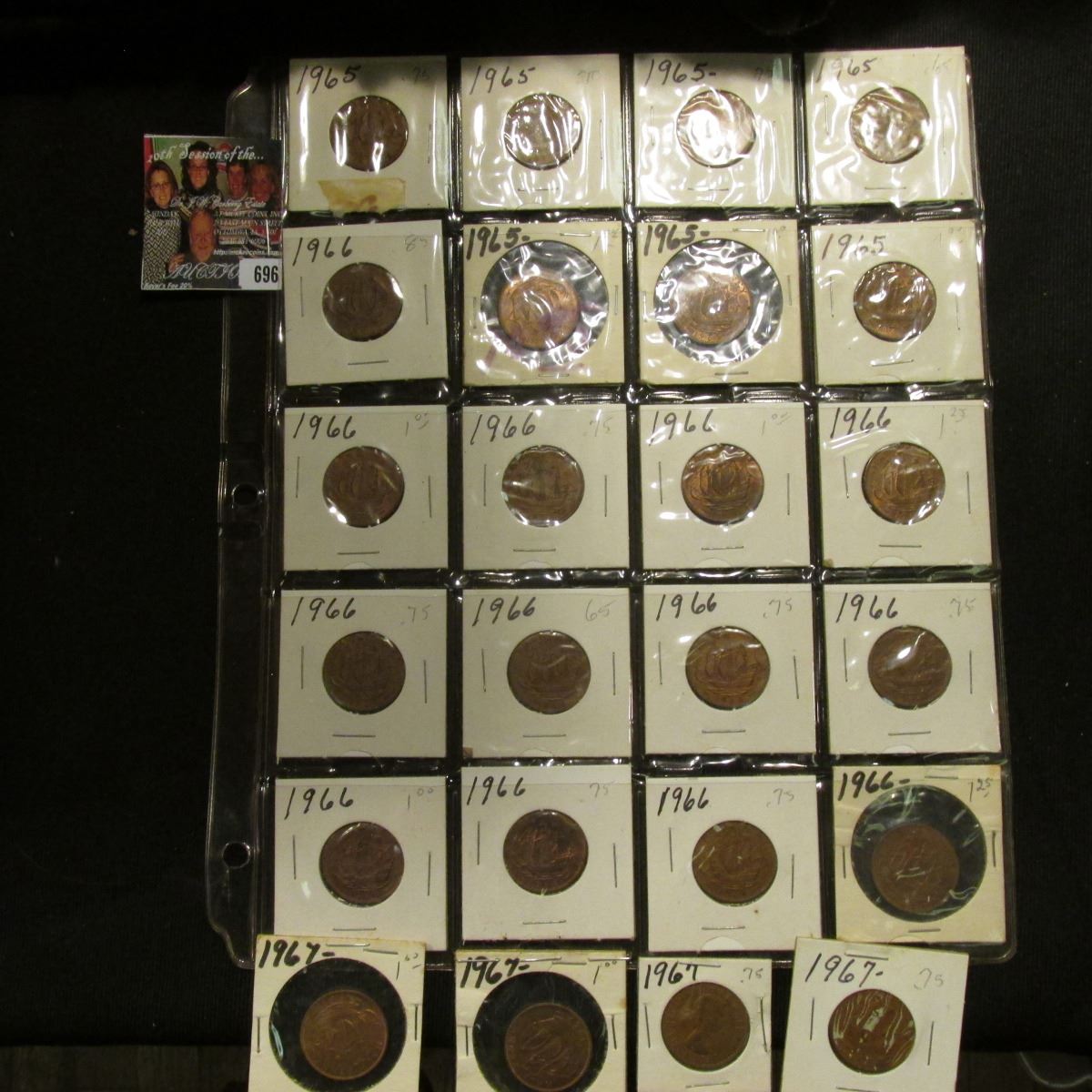 20-Pocket Plastic Page with a collection of (24) Great Britain Half Pennies dated 1965-67. Several high grades.