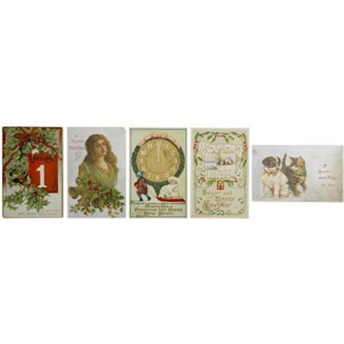 <B>Wonderful Lot of 20 Printed Vintage New Year Post Cards,</B></I> 1890s to 1910s,<B> </B></I>some used, some divided back, some embossed, and others white bordered. Most near fine or better. A great lot!<BR><BR><b>Shipping:</b> Flat Material, Small (<a target="_blank" href="http://www.heritageauctions.com/common/shipping.php">view shipping information</a>)