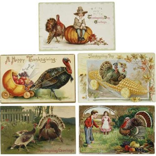 <B>Wonderful Lot of 20 Printed Vintage Thanksgiving Post Cards,</B></I> 1890s to 1910s,<B> </B></I>some used, some divided back, some embossed, and others white bordered. Most near fine or better. A great lot!<BR><BR><b>Shipping:</b> Flat Material, Small (<a target="_blank" href="http://www.heritageauctions.com/common/shipping.php">view shipping information</a>)
