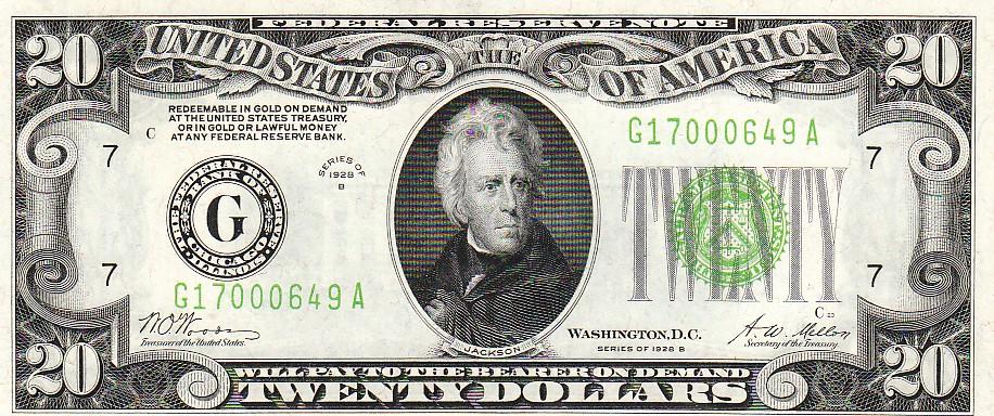 $20 REDEEMABLE IN GOLD 1928 CRISP SNAPPY