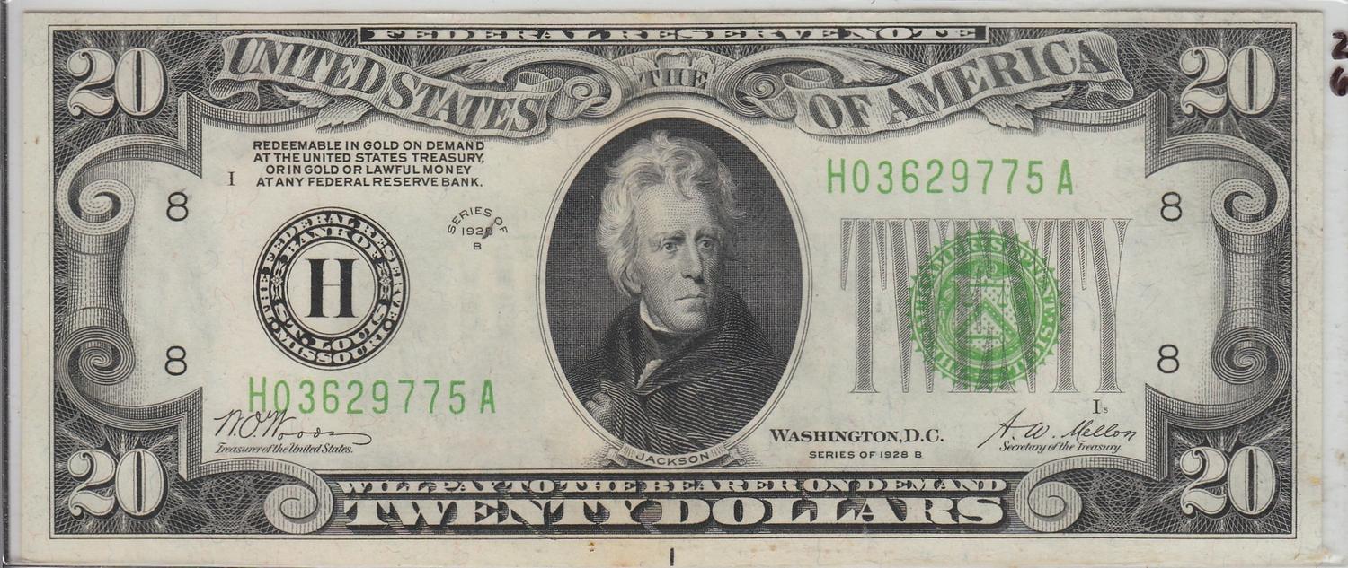 $20 REDEEMABLE IN GOLD 1928 ST LOUIS GREEN SEAL