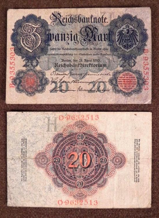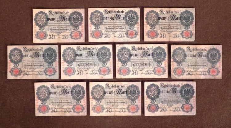 20 REICHMARK GERMAN NOTES FROM EARLY 1900'S